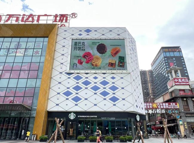 佛山三水萬達廣場外墻LED大屏廣告規格近100平方米,大尺寸屏幕在商業廣場環境中具有顯著的視覺存在感,能夠有效吸引廣場人群及道路通行者的注意力。其次,屏幕設置于建筑外立面主要入口附近,正對開闊區域,確保了廣告信息能夠從多方向被清晰觀看。LED大屏每天從上午10點半至晚間9點半持續運營,廣告內容以15秒每次、每天100次的頻率循環播放。這種高頻率的播放方式,能夠對日間不同時段經過的受眾進行反復提示,有助于強化品牌認知。